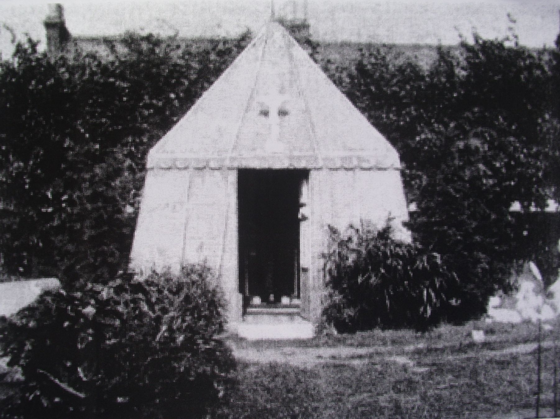 The mausoleum's door was blocked up and covered by plaques in the 1970s