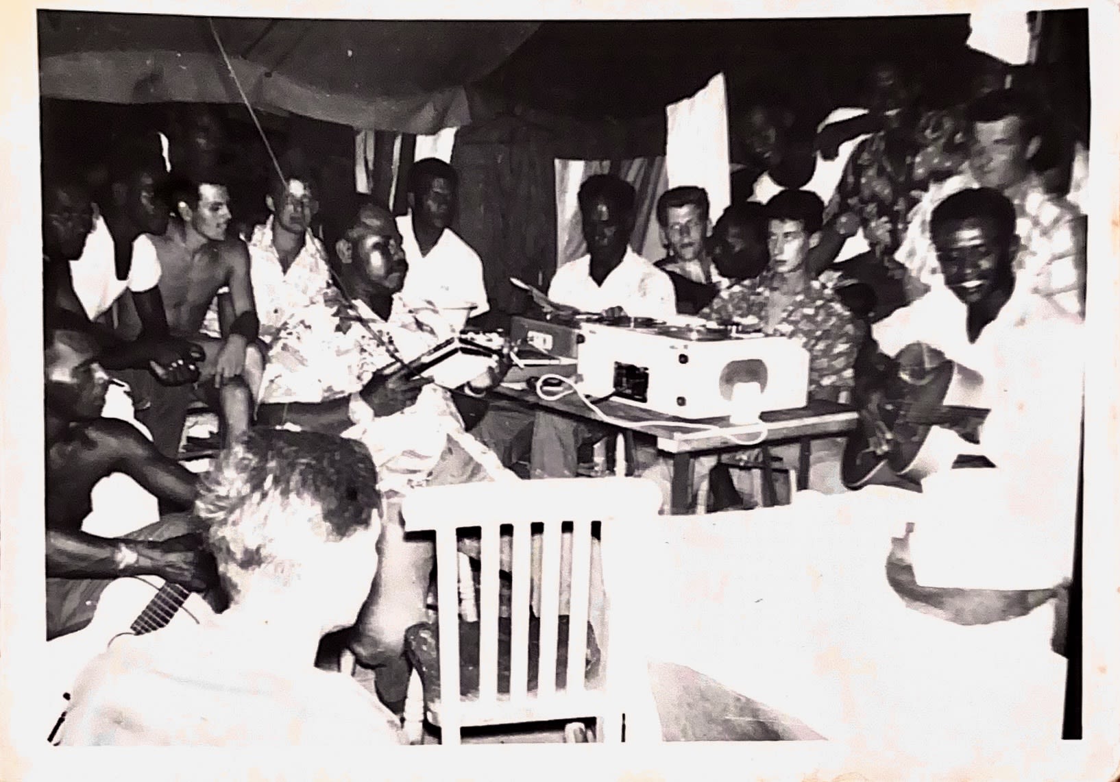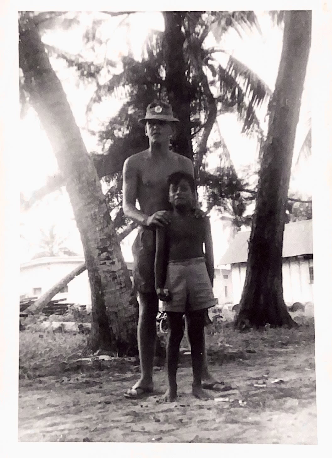 Clark stayed on the island for an entire year, witnessing five detonations: Britain’s biggest ever bomb, ’Grapple Y’, and four smaller ‘Grapple Z’ tests. He built roads, and swam in the sea with friends. Photographs show them posing alongside boys from the island and partying together with the men.