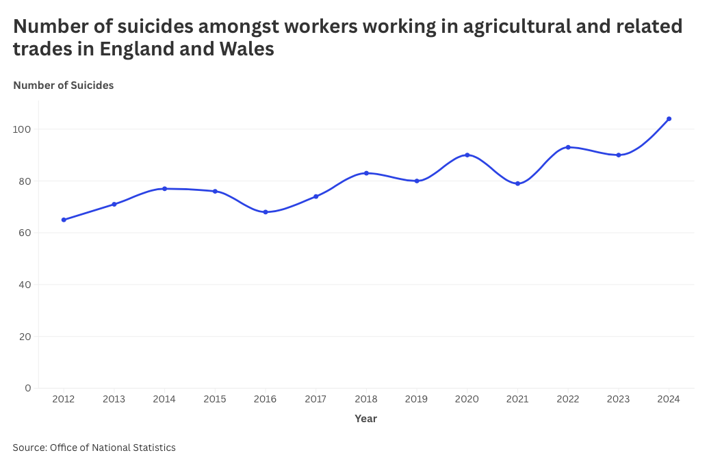Statistics from the Office of National Statistics (ONS) shows that suicide rates amongst those in agricultural and related trades have, on average, increased over recent years.