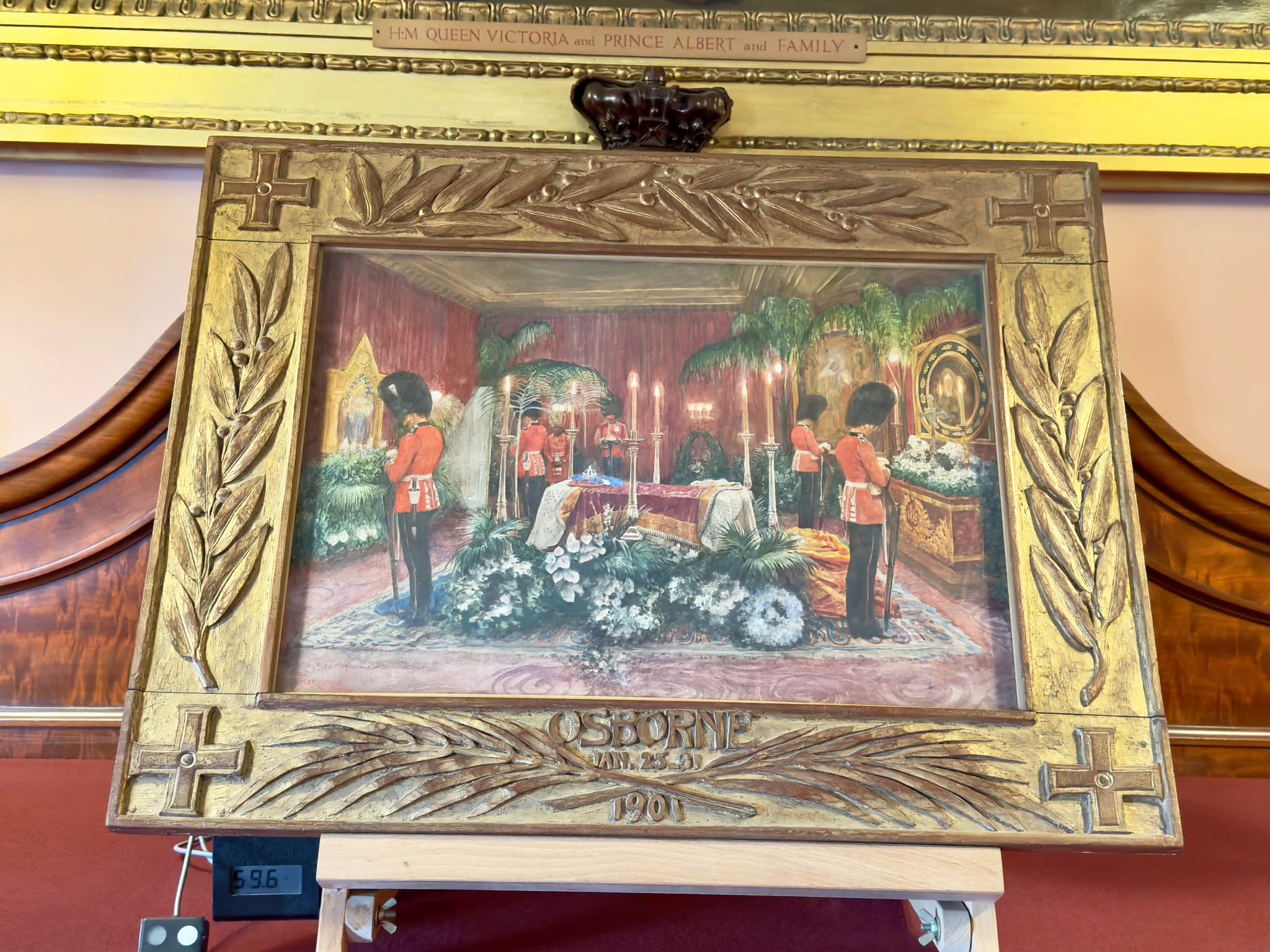 Photo credit: Kitt Garrett, English Heritage, Osborne House Queen Victoria's coffin with four guards.