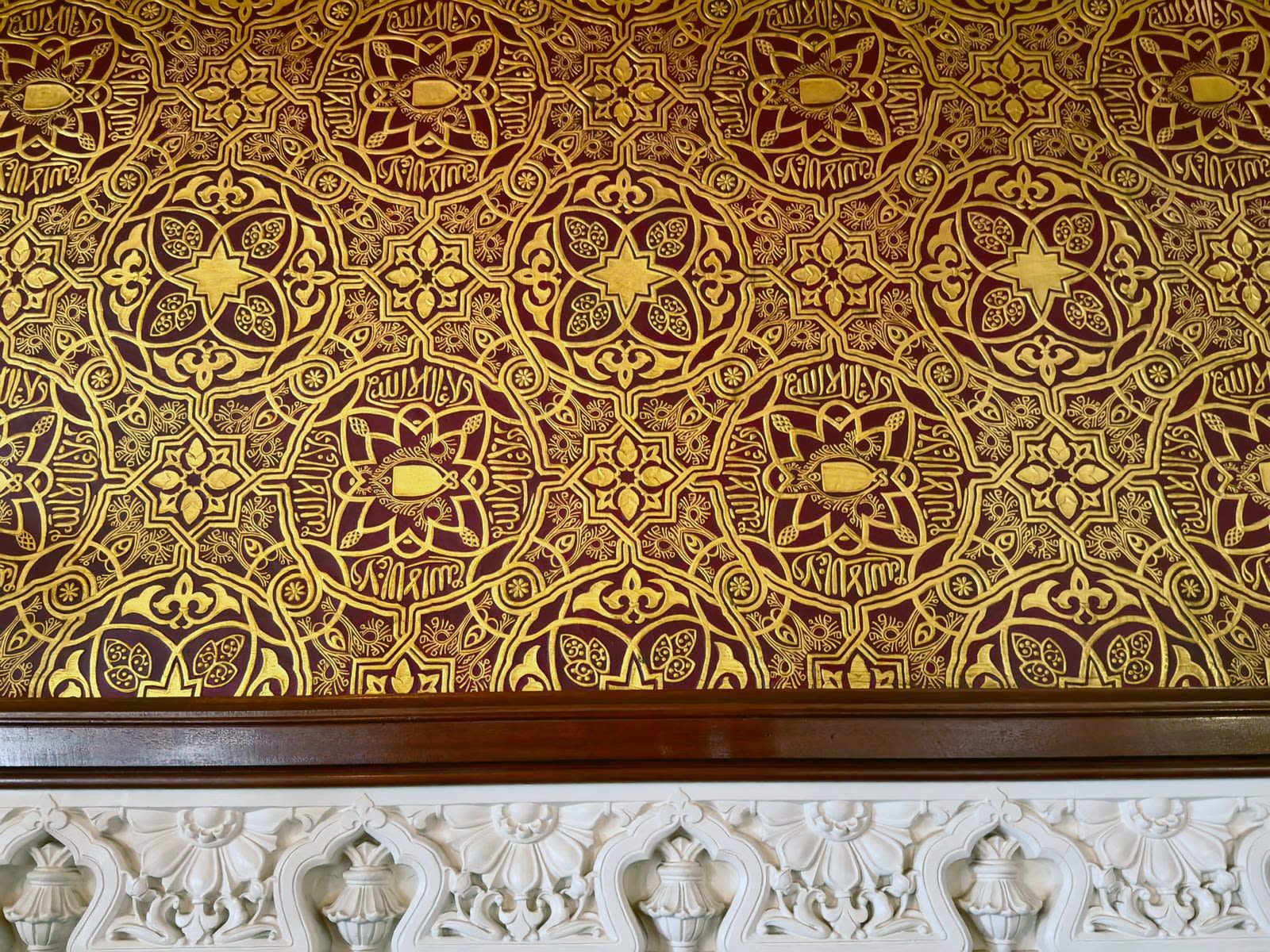 To honour both Islamic and Hindu traditions, the wallpaper blends key motifs.