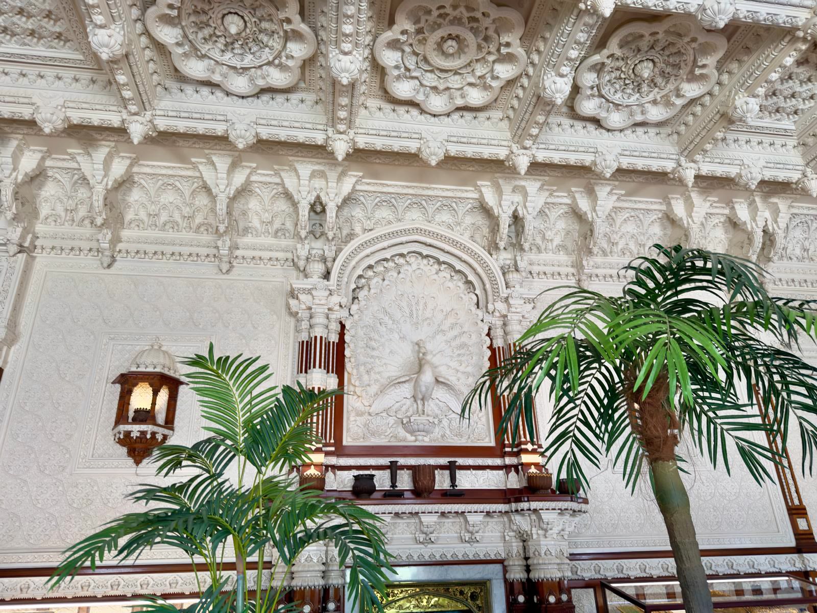 So, it’s not ice cream, it's not whipped cream, and it’s not ivory. It’s plasterwork and wood inspired by the palaces of India—every inch of the walls and ceiling reflect the handcraftsmanship of intricate detail.