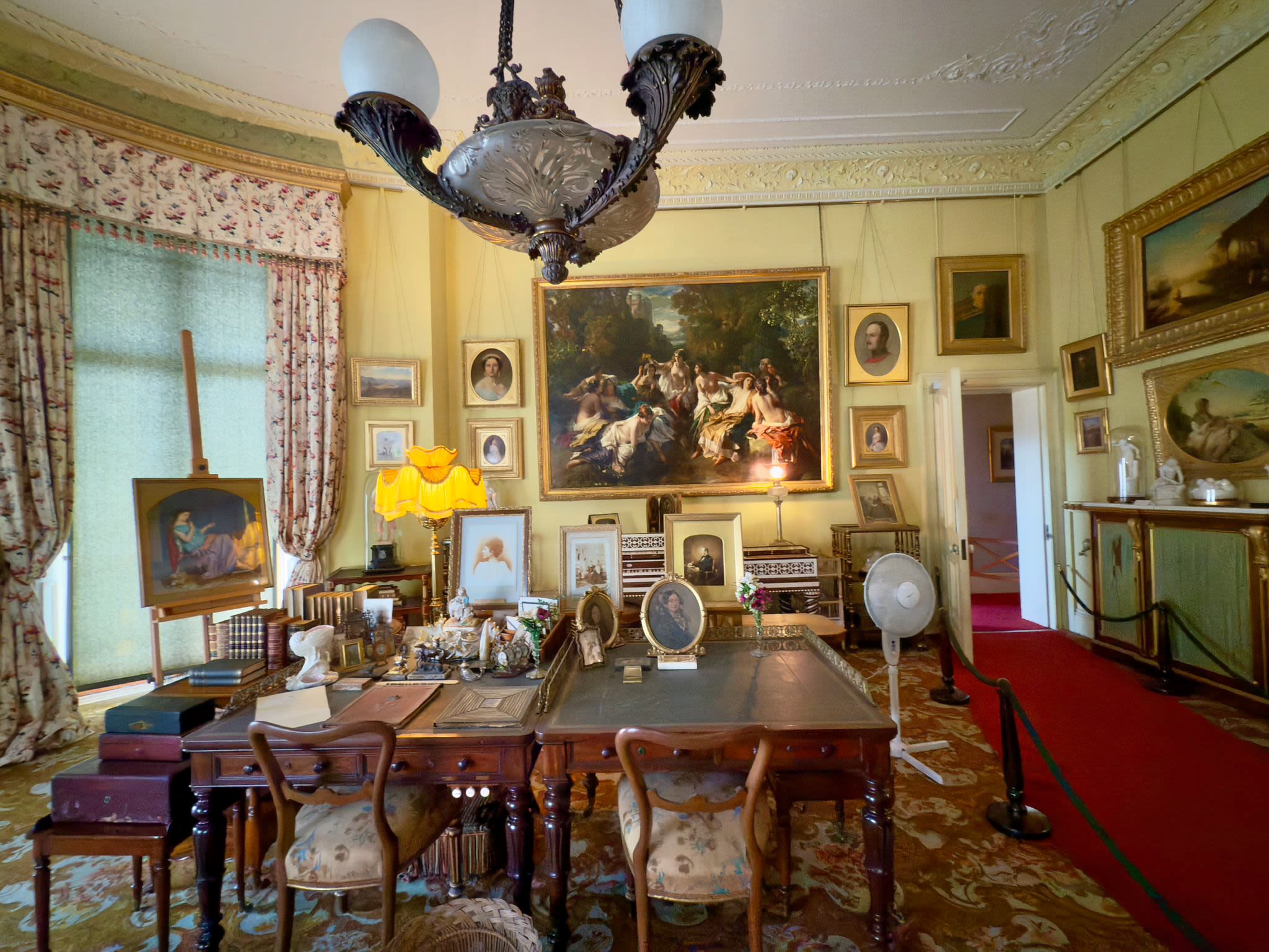Queen Victoria and Prince Albert shared a sitting room working side by side on the dispath-boxes here, delivered by the Queen's messengers which arrived daily from London.