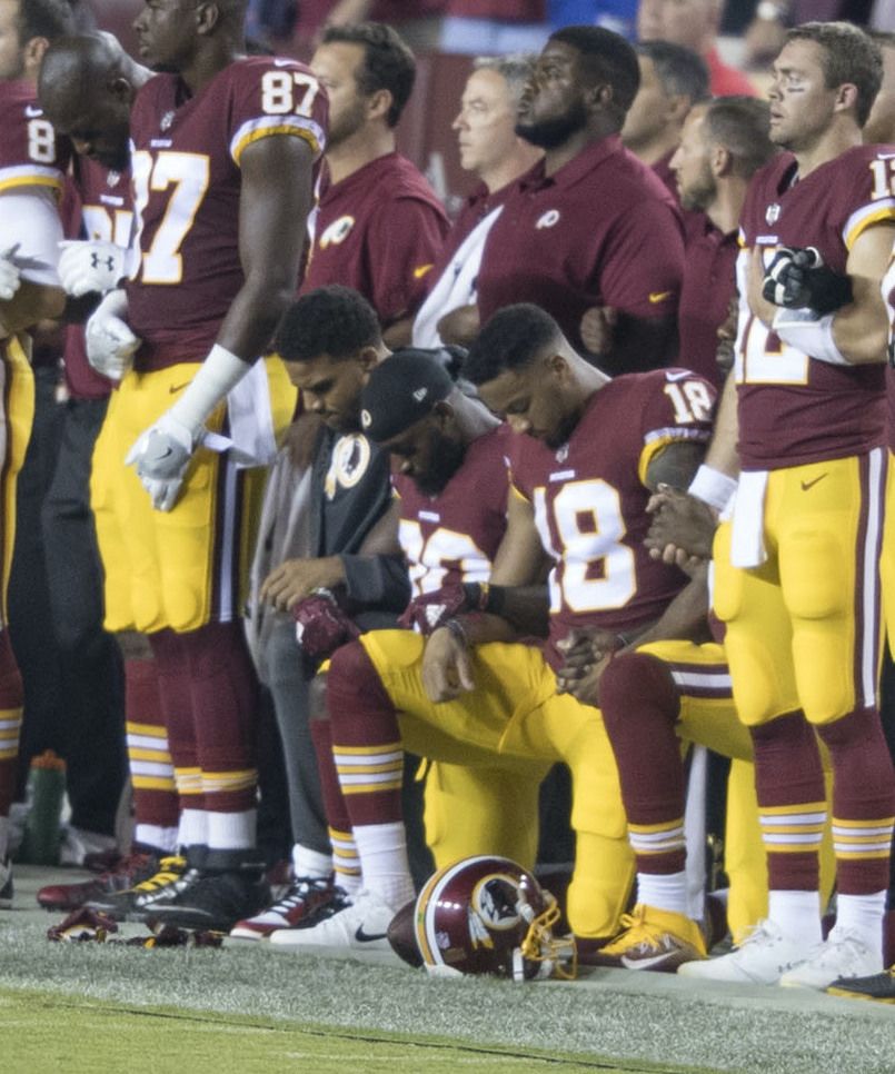 Photo Washington Commanders players taking the knee by Keith Allison on Flickr