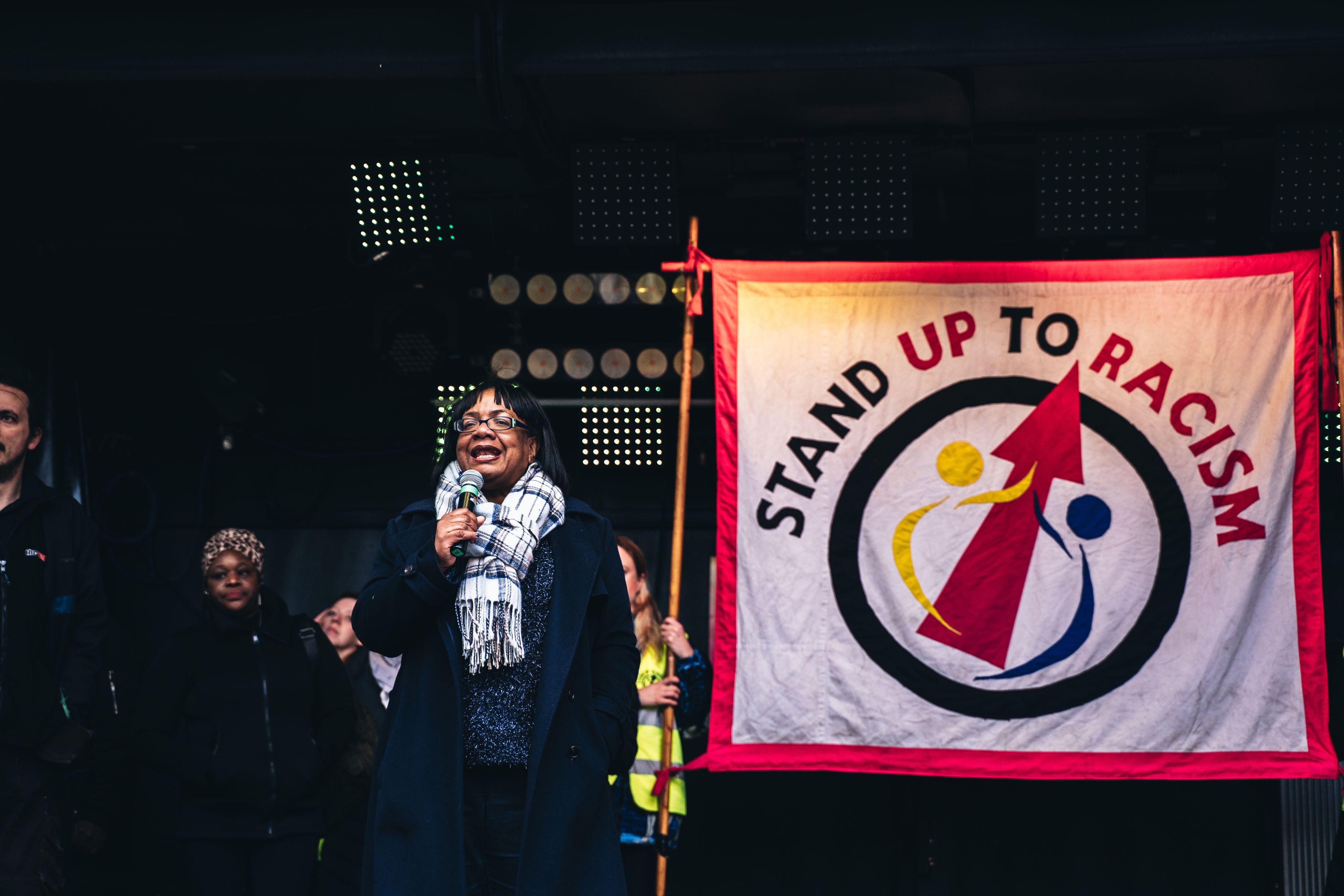 Diane Abbott speech at UN Anti-Racism Demonstration, 2019. (Sandor Szmutko/Shutterstock)
