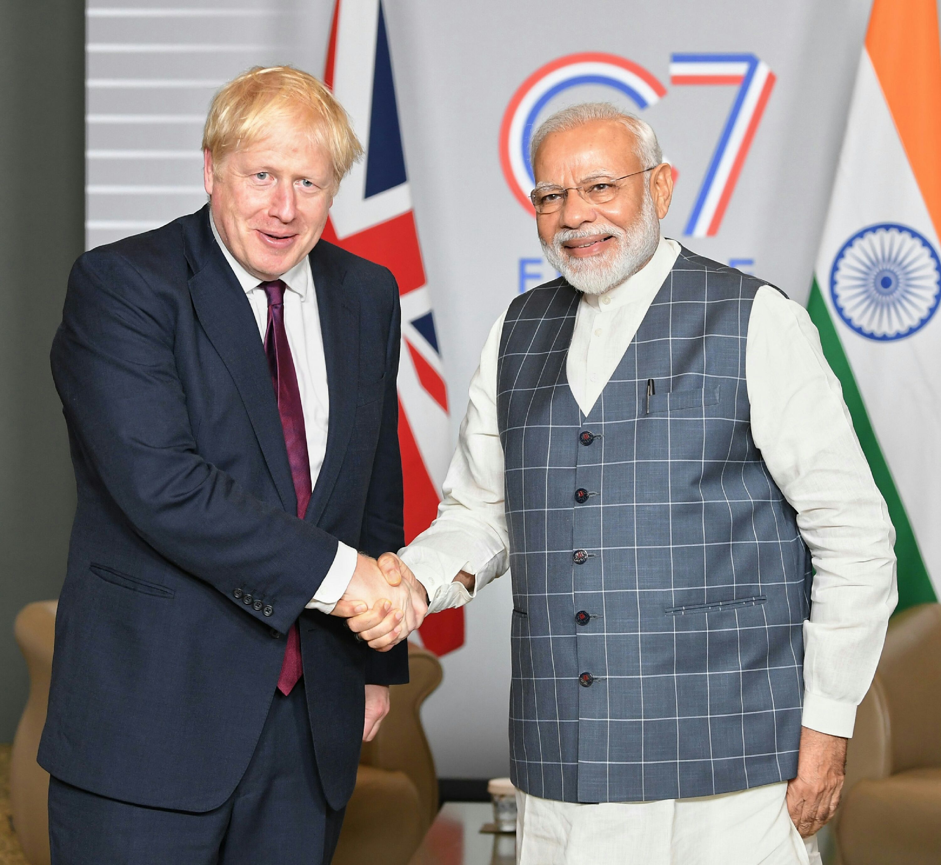 Shri Narendra Modi meeting Boris Johnson, in France on August 25, 2019 (YashSD/Shutterstock)