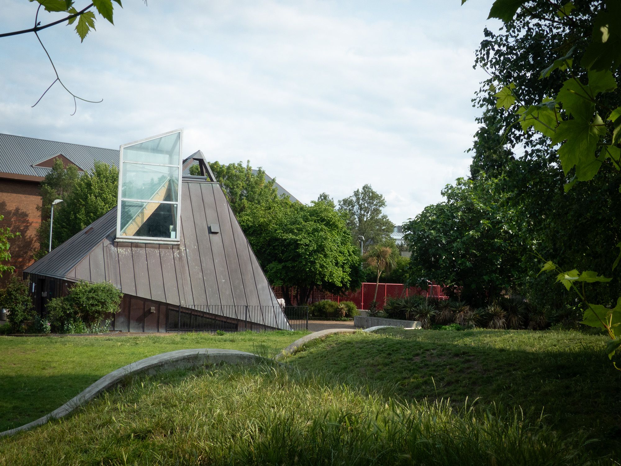 Drury Lane Burial Ground as it stands today: a small courtyard with a playground, basketball court and flowerbeds. (Photo credit: Callum Cafferty)