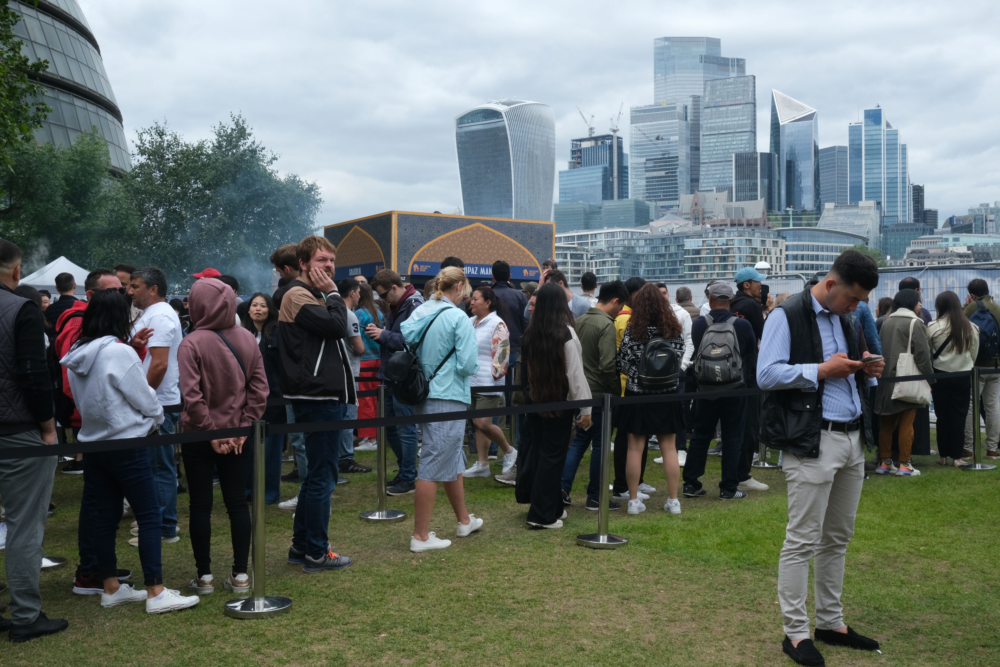 In a backyard behind a fence, four men were sat down on a package of kitchen rolls cutting cucumbers and tomatoes. Nothing would be too rare about this setup for a Sunday noon - except that it happened right next to the London City Hall.