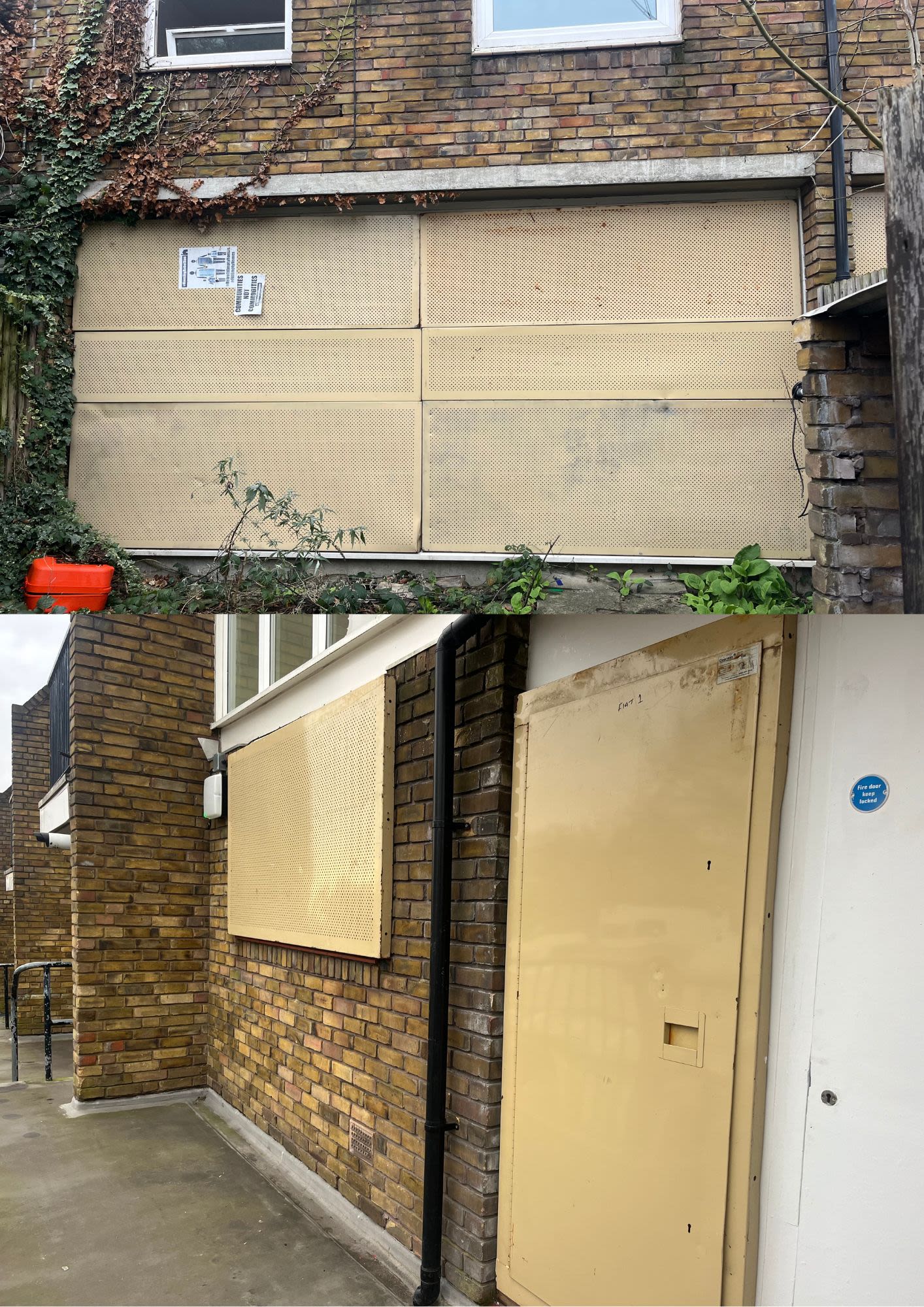 From Jules' window, two yellow doors stared back at me. I later learnt that these were all empty properties, boarded up with plywood. Some were dotted about the estate, others in rows of pale mustard obedience.