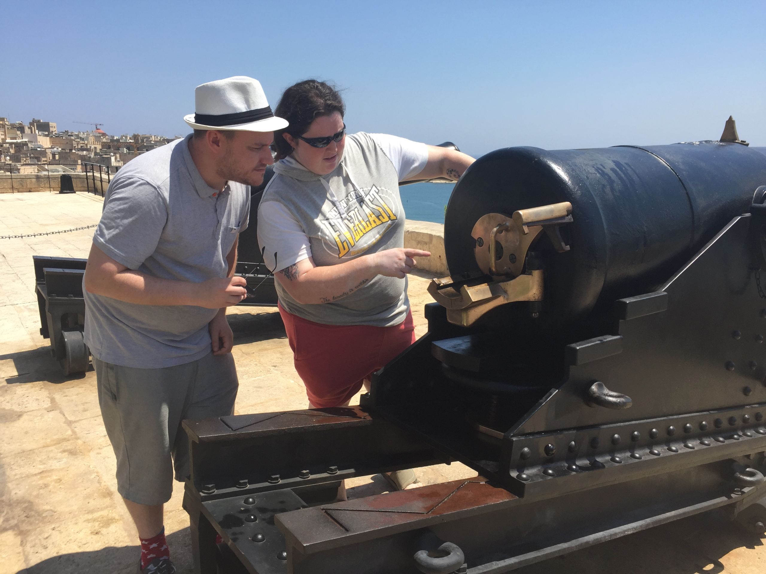 The Minister of Defence explains the mechanism of a cannon to the Prime Minister