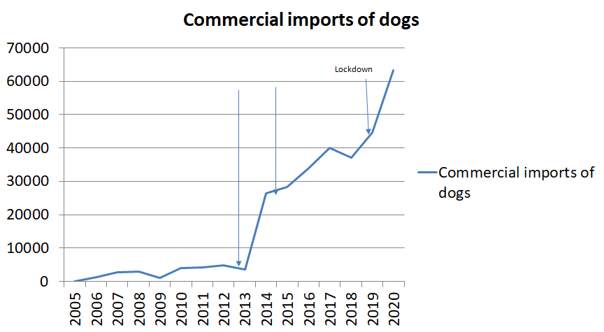 Bowles said: ''These figures don’t account for the vast numbers of dogs we suspect are being illegally trafficked into the country in addition to these.''
