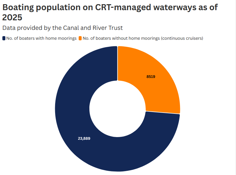 And contradictions continue to lie at the heart of these claims. As Jack acknowledged, the numbers of continuous cruisers have increased over the past few years (around 2.5% according to CRT’s 2025 annual report). Yet, across the entirety of the UK, the CRT oversees around 8,500 continuous cruisers. In London, that number tops just below 2,000.