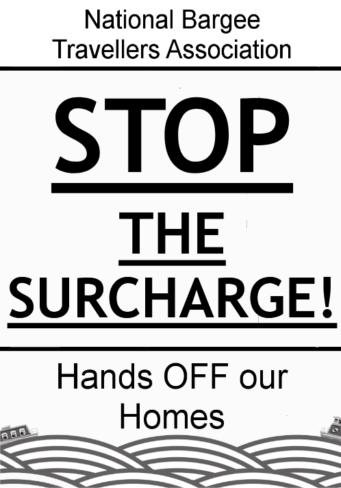 A placard template provided by the NBTA, advocating the end to the surcharge on continuous cruisers