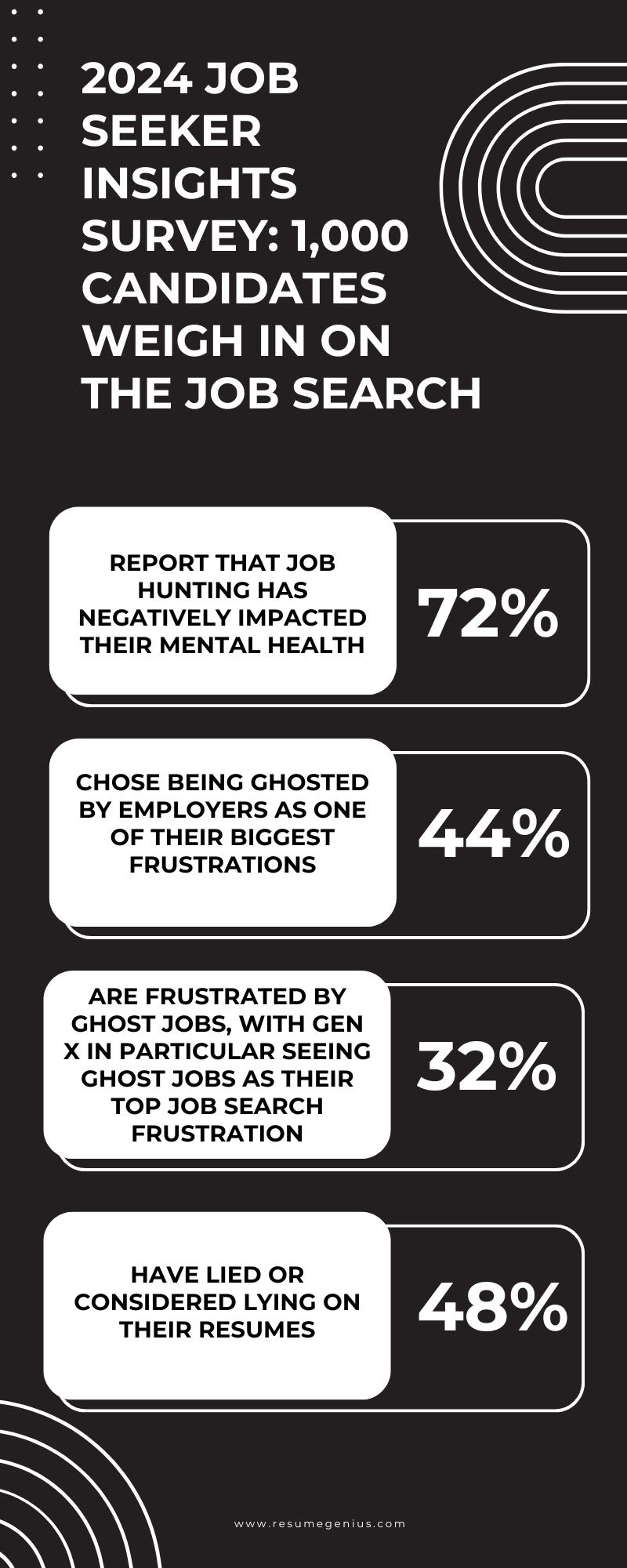 In a survey by Resume Genius, 44% of job seekers chose being ghosted as one of their biggest frustrations.