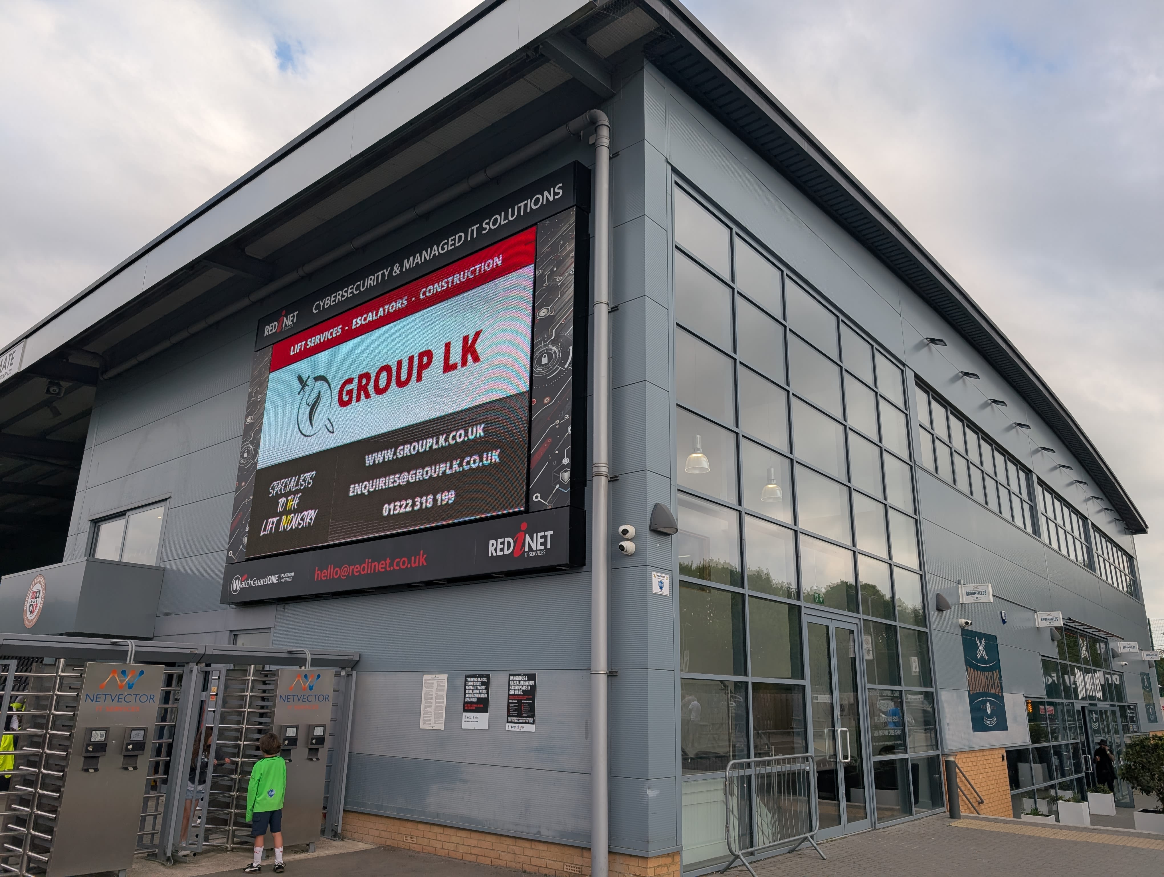 Bromley FC 's Hayes Lane entrance sports the logo of their freshly renamed stadium. Image credit: Mitchell Hall