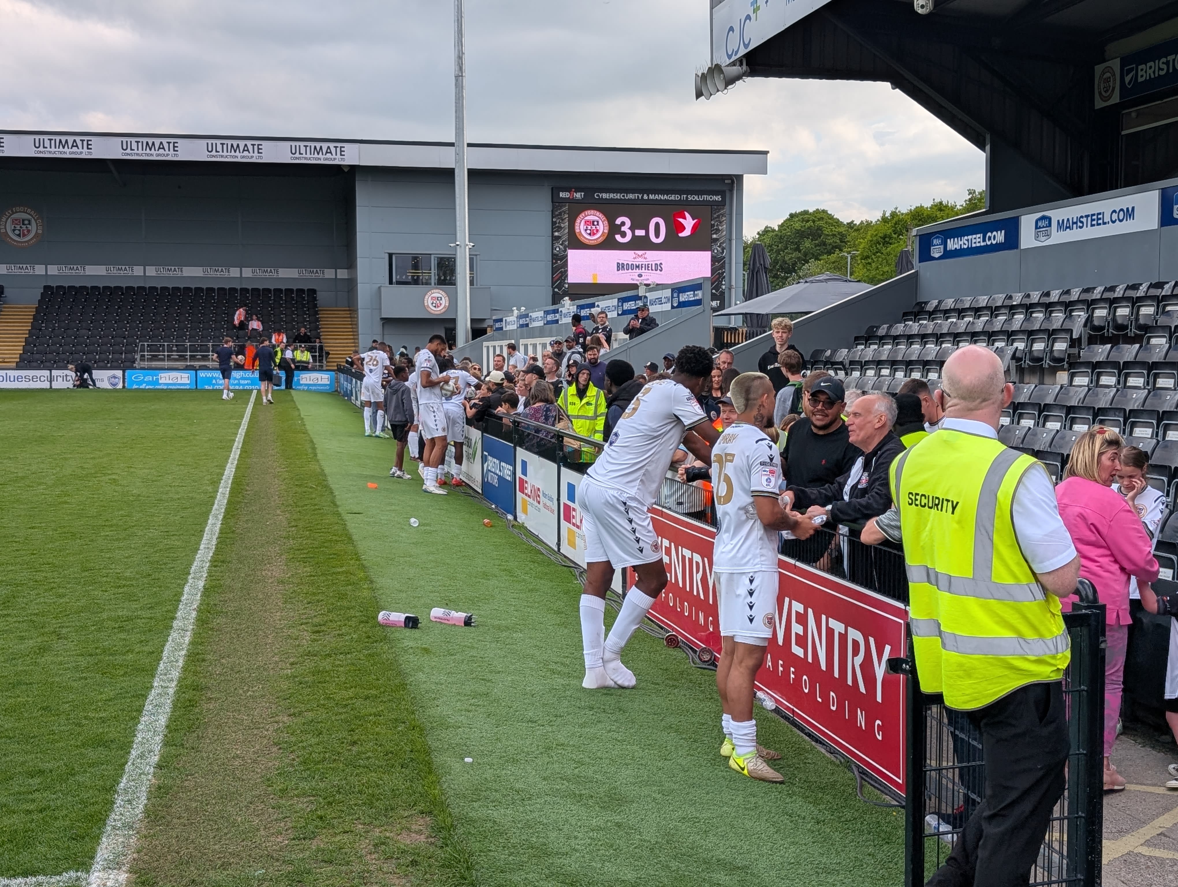 Bromley players sign autographs and take pictures with fans after the final game of the 2024/25 season. Image credit: Mitchell Hall