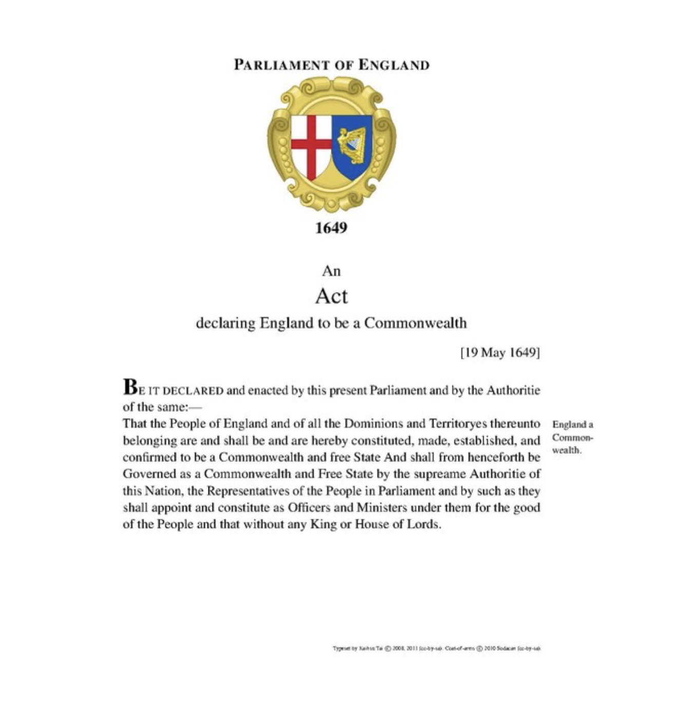 In 1649, following the English Civil War, King Charles I was executed, and the monarchy and House of Lords were abolished. Parliament declared England a republic, establishing the Commonwealth.