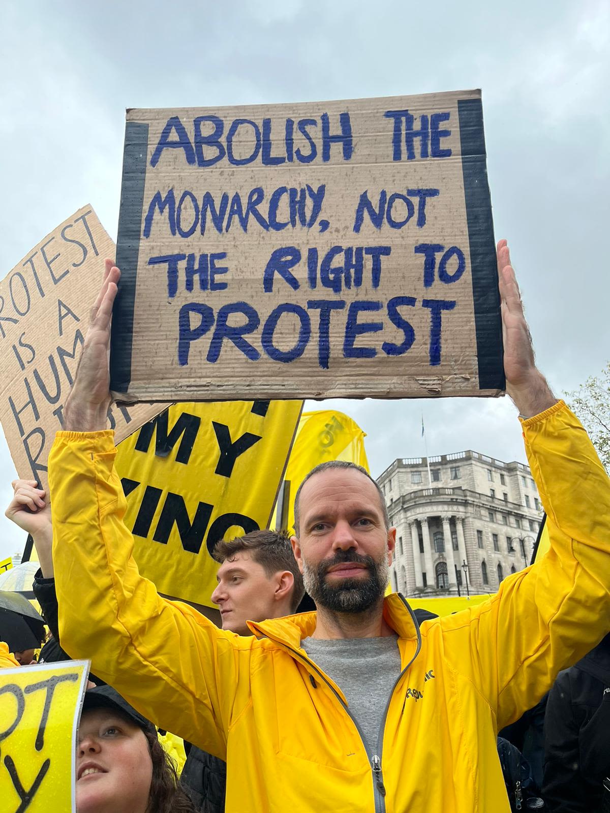 Protest during the coronation, in May 2023 in London (Credit: Bram Van Montfoort)