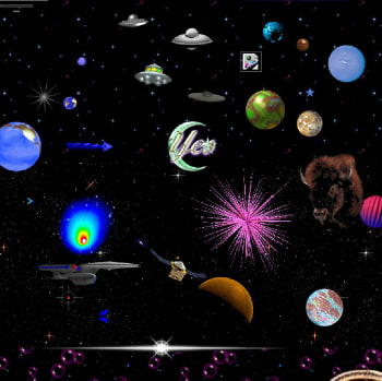 Resplendently busy, Gifs and loud colours populate a tribute to Geocities webpages, the site hearkening back to a time before embedded media became seamless.