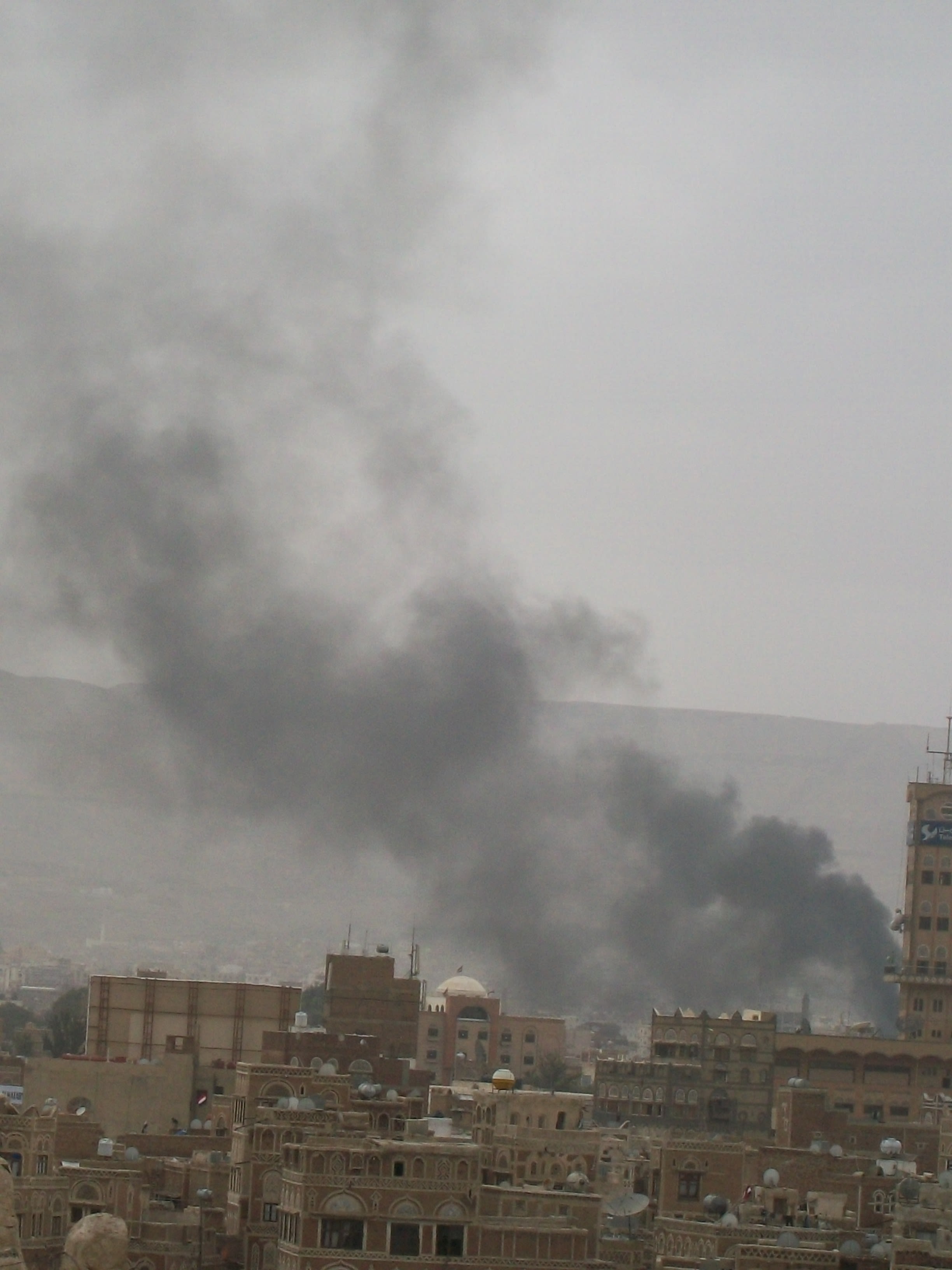 Towards the end of my stay in Sanaa things shifted once more. At the end of May 2011 street fights broke out, between government forces and those faithful to Ali Mohsen in the northern part of the capital. One day I and other residents were awakened by loud explosions. After going up to the roof of our block of flats we could clearly see the fire exchange.