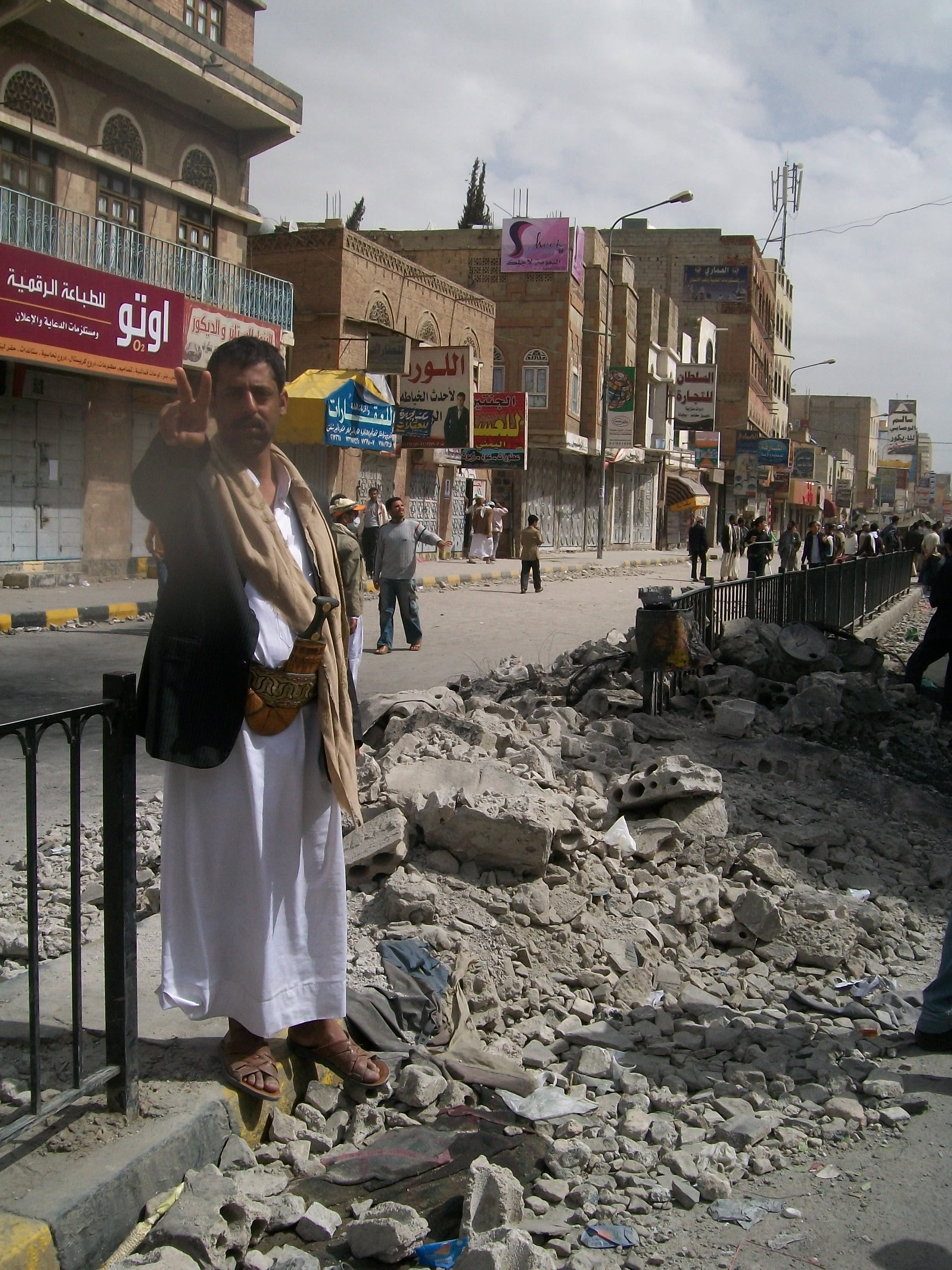 The scale of the events shifted on the 18th of March when, it is now believed, the government opened fire on unarmed protesters killing more than 50 people. This pushed one of the top generals, Ali Mohsen al-Ahmar, to stop supporting the president. It seemed the beginning of the end was getting closer. And yet again, things slowed down, with more protesters joining in, more dancing, chanting and occasional gunfire but without major attacks.