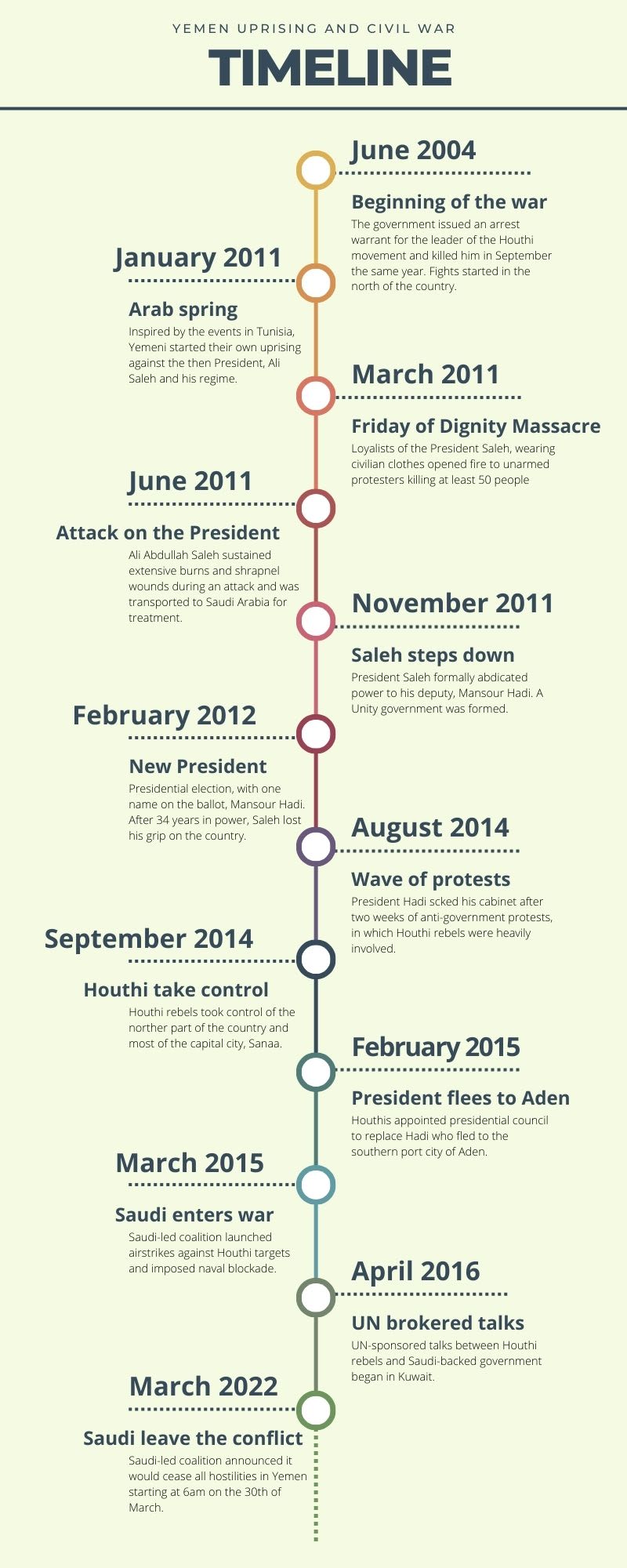 The uprising which ultimately led to ousting of the then President, Ali Abdullah Saleh, after 34 years in power and all-out civil war in the years that followed.